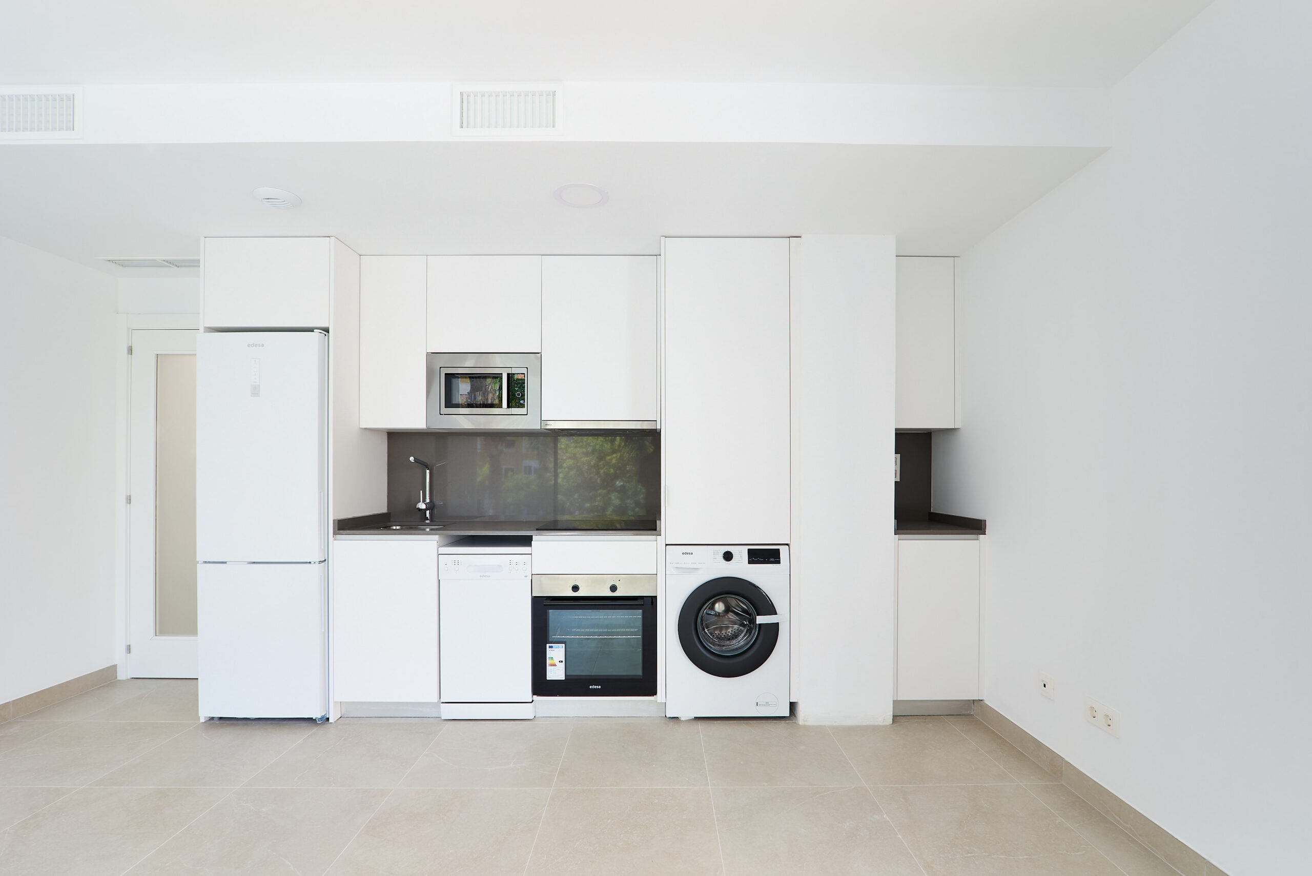 - полностью оборудованная кухня полностью бытовой техникой, включая плиту, духовку, микроволновку, холодильник, посудомоечную машину